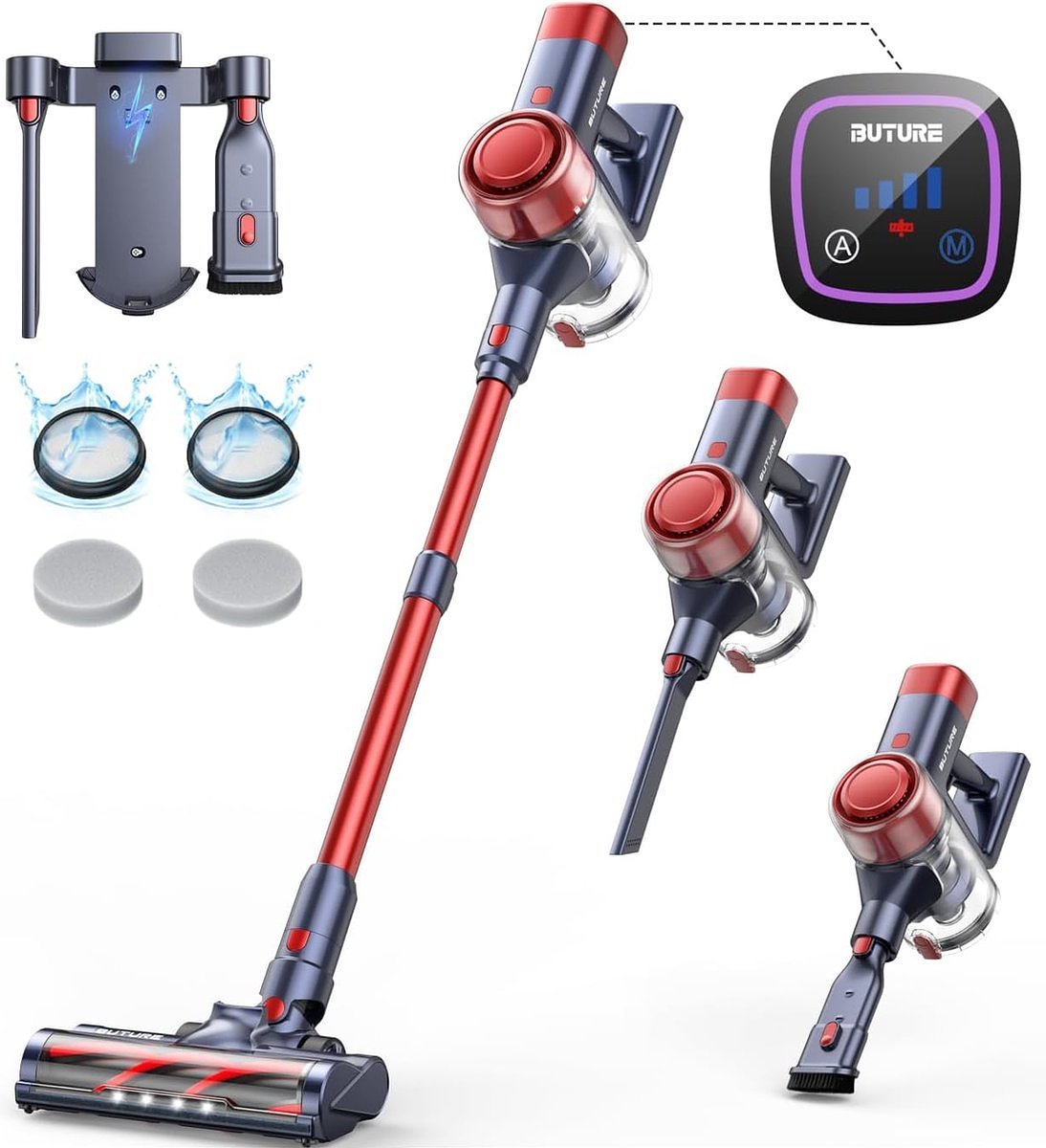 BuTure Draadloze Stofzuiger – 400W/33 kPa – Slimme Accustofzuiger