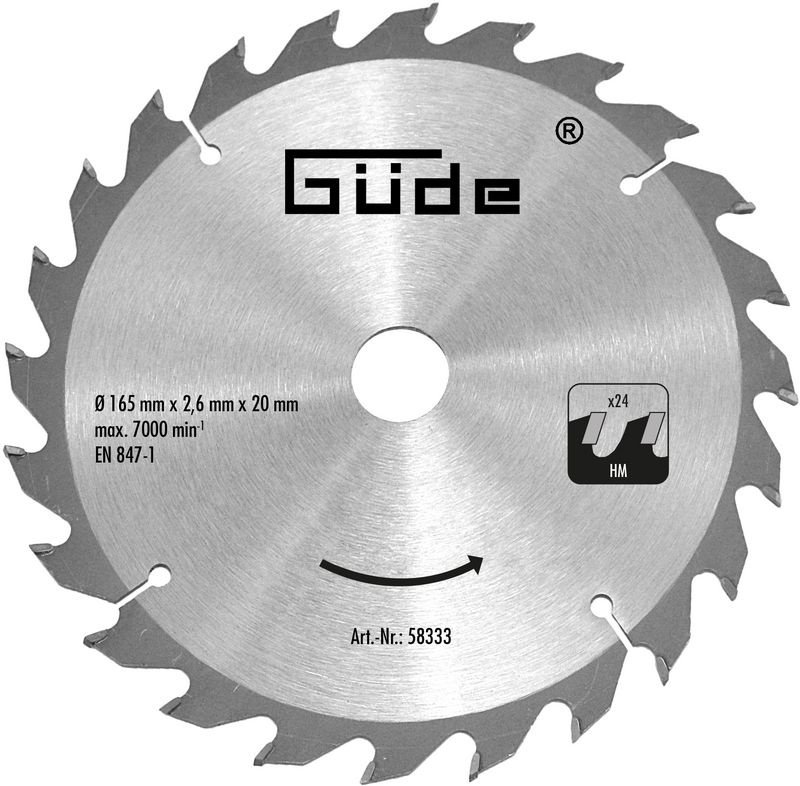 Güde Houtzaagblad HM – 20T – 165x20x24mm – voor Güde invalcirkelzaag en Güde cirkelzaag